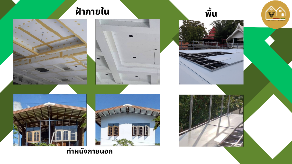 สำหรับ ฝ้า ผนัง : ความหนา 5-8 mm. สำหรับพื้น : ความหนา 10-20 mm